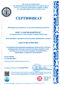 Сертификат ГОСТ Р ИСО 9001-2015. Настоящий сертификат удостоверяет: Система менеджмента качества ООО «САМСОН КОНТРОЛС» была проверена и признана соответствующей требованиям стандарта ГОСТ Р ИСО 9001-2015 в отношении проектирования, разработки, производства и поставки трубопроводной арматуры и вспомогательных устройств к ней, оказания услуг технической поддержки, послепродажного, гарантийного и сервисного обслуживания.